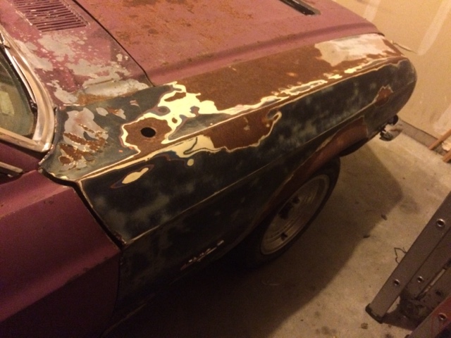 I took a few pictures of Lola tonight after the kids were in bed. I was getting kind of worried about what I might have gotten myself into, but now I think I may have hit the jackpot as far as cheap old rust bucket 1968 Mustang Coupe's go. (Remind me of that in a few months or years when I have really gotten into this project.)